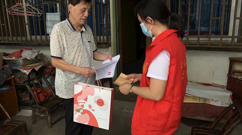 朗诵会后,社区工作人员及党员志愿者们通过送月饼、献爱心的方式为特困家庭送去节日的祝福,与他们亲切地拉家常,叮嘱他们要保重身体。让困难家庭感受到了节日的气氛,精神上得到了鼓励;一份份慰问品,一句句关怀的话语以真情和实际行动温暖了居民群众的心,拉近了居民与社区的距离。